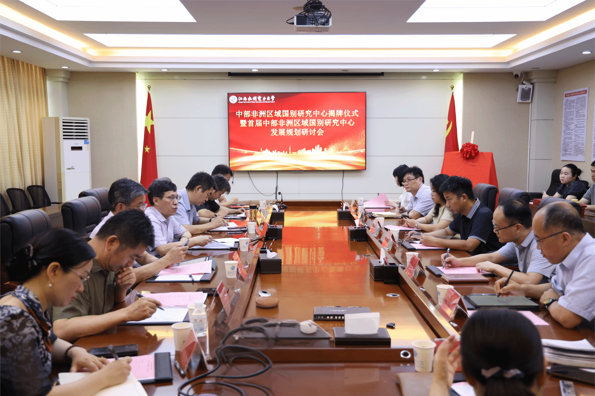 7月8日上午,我校中部非洲区域国别研究中心揭牌仪式暨首届发展规划研讨会在瑶湖校区隆重举行。校党委书记汪胜前出席并致辞,江西师范大学李勇忠教授、南昌市外事办程坚副主任、江西省委办公厅信息决策咨询专家、南昌大学赖祎华教授与学校相关职能部门、学院负责人及教师代表参会。活动由校党委委员、副校长李培生主持。