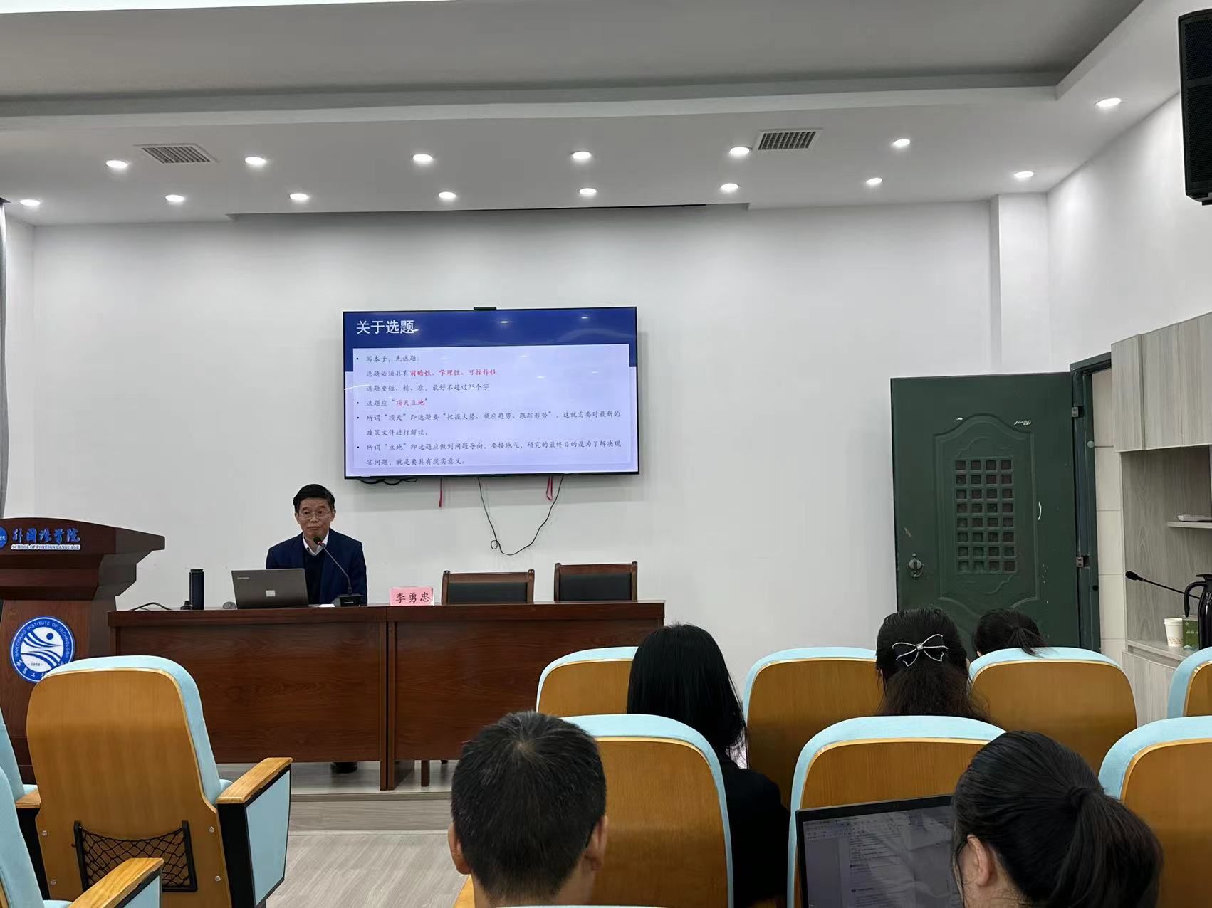 李勇忠教授介绍了国家社科基金申报与立项的新变化和新趋势,并以自身课题为例,就如何选题、如何进行课题论证等内容与学院师生进行了热烈的交流与探讨。