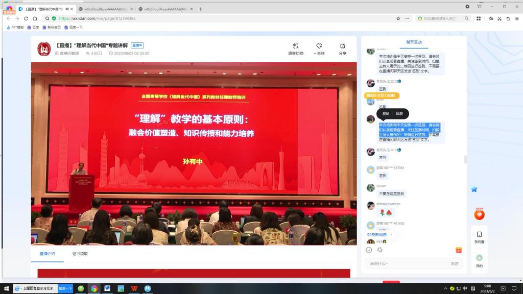 本次培训历时两天,我院教师在线收看了《理解当代中国》系列教材的“专题讲解”环节和“《英语读写教程》教学示范”环节,同时参加了线上答题,并向组委会提交了学习心得。通过培训和学习,任课教师进一步认识到“三进”工作的重要意义,进一步提升了落实立德树人根本任务的能力,对我院教师今后提高教学水平和效果具有十分重要的意义。(文/图 王晓兰)
