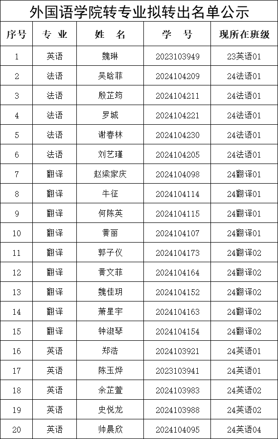 2025年WilliamHill威廉希尔转专业拟转出名单公示