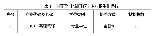 外国语学院翻译硕士(英语笔译)专业招生指标数如下表1所示。