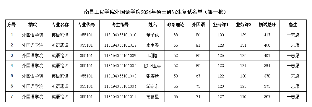 南昌工程学院WilliamHill威廉希尔2024年硕士研究生复试名单(第一批)