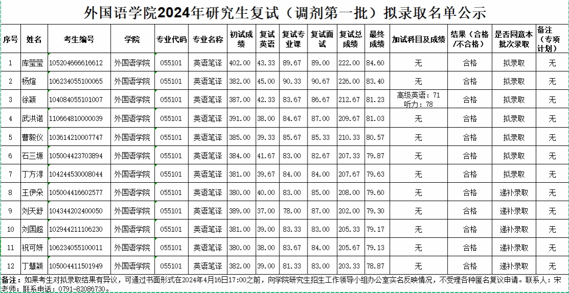 WilliamHill威廉希尔2024年研究生复试(调剂第一批)拟录取名单公示