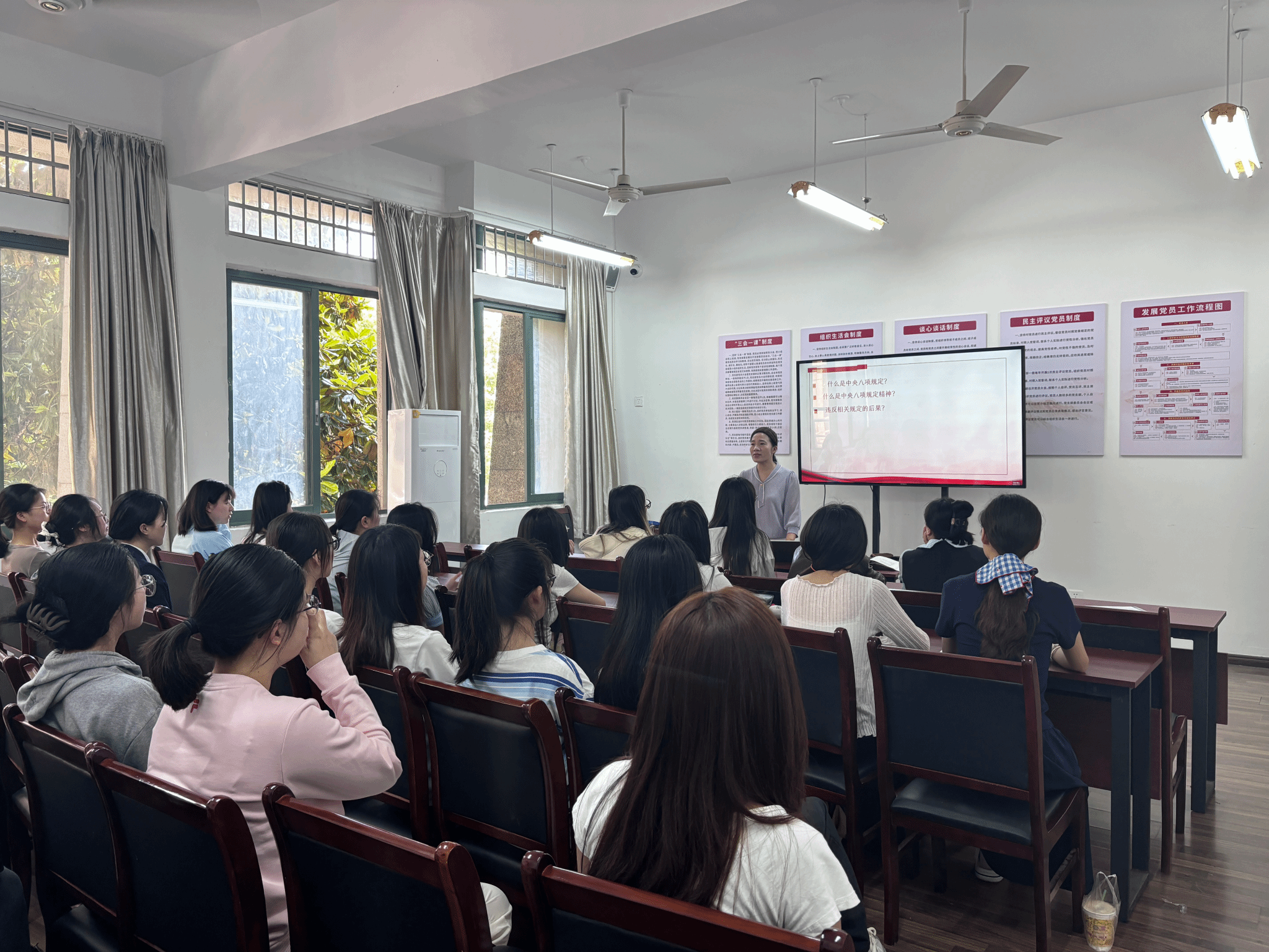 此次学习教育组织毕业生党员学习了《习近平关于加强党的作风建设论述摘编》、中央八项规定及实施细则的精神,结合党章党纪,学习了违反中央八项规定精神警示案例,要求全体毕业党员在今后的工作、生活和学习中要廉洁自律,持续改进工作作风,密切联系群众。(图/文 何安平)