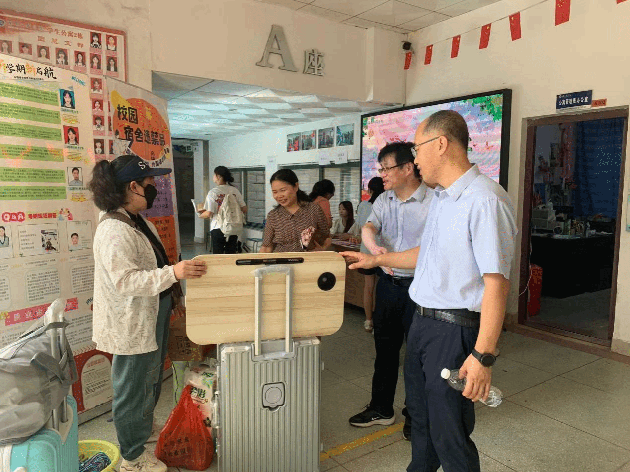 领导班子一行人前往学校集中迎新点、学院迎新点,仔细查看了学生手册等迎新物料,详细询问报到情况及新生入住情况,认真了解学院相关部门今年迎新工作中的新做法、新举措,并与新生及家长亲切的交流。同时,学院领导班子对迎新工作人员和学生志愿者的服务给予肯定,叮嘱大家要为新生做好服务,帮助新生更好地融入大学生活。