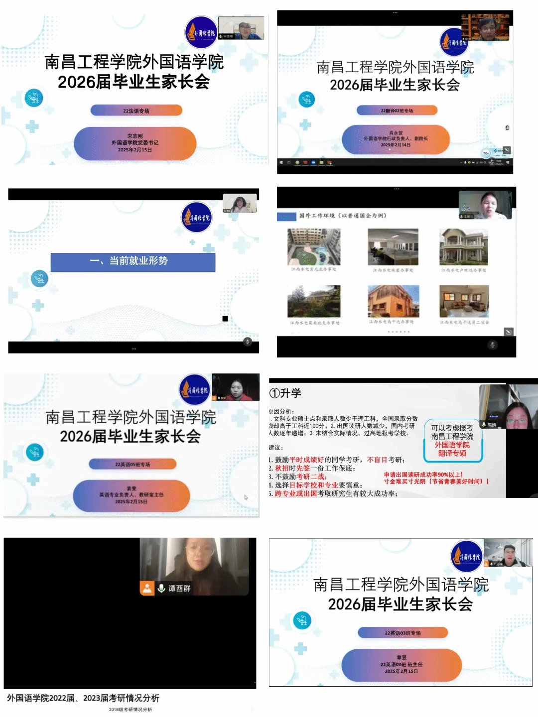 WilliamHill威廉希尔班子成员、专业负责人、教研室主任、就业辅导员分别从升学数据、就业帮扶政策、就业形势等多方面进行深入讲解,着力打通人才培养与就业衔接的关键环节,同时也建议家长理性评估就业形势,配合学院共同指导学生明确职业定位,共促学生实现高质量就业的目标。