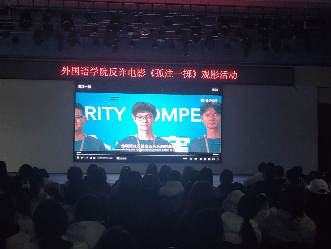 影片《孤注一掷》聚焦当下高发的境外电信诈骗、网络赌博等犯罪案例,通过真实残酷的剧情揭露诈骗产业链的运作内幕,展现受害人被骗后身心遭受的巨大创伤。观影过程中,师生们被影片中触目惊心的诈骗手段和受害者遭遇深深震撼。
