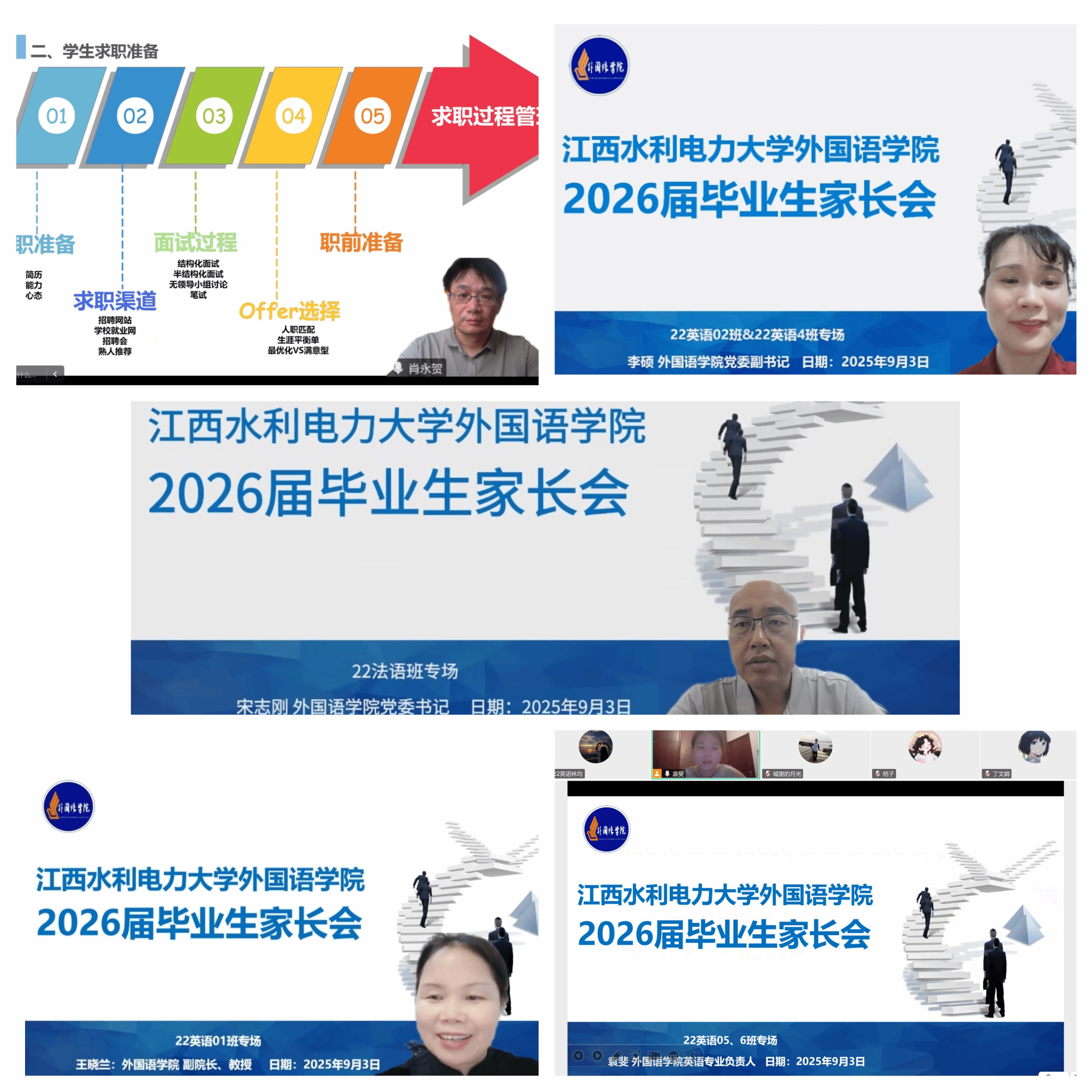 近日,为落实2026届毕业生就业工作,深化家校协同合作,促进毕业生高质量就业,WilliamHill威廉希尔2022级所有班级召开线上家长会。WilliamHill威廉希尔领导班子、专业负责人、班主任及2022级全体学生和家长参加会议。