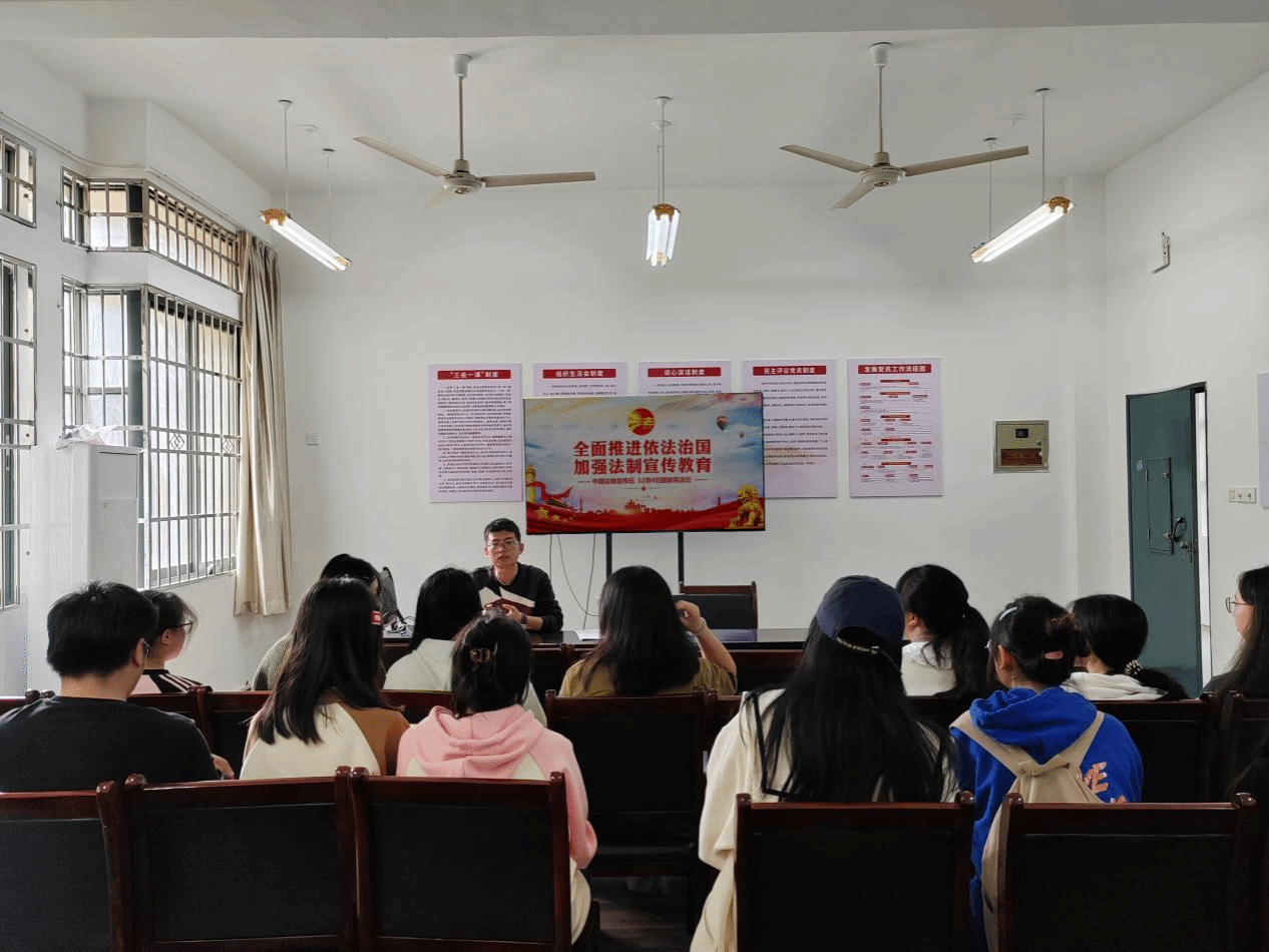 2023年11月3日,为进一步加强大学生法治教育,WilliamHill威廉希尔在崇德楼A103开展了国家法治宣传教育活动,WilliamHill威廉希尔分团委书记兼学工办主任王聪与各班学生代表参加了此次活动。