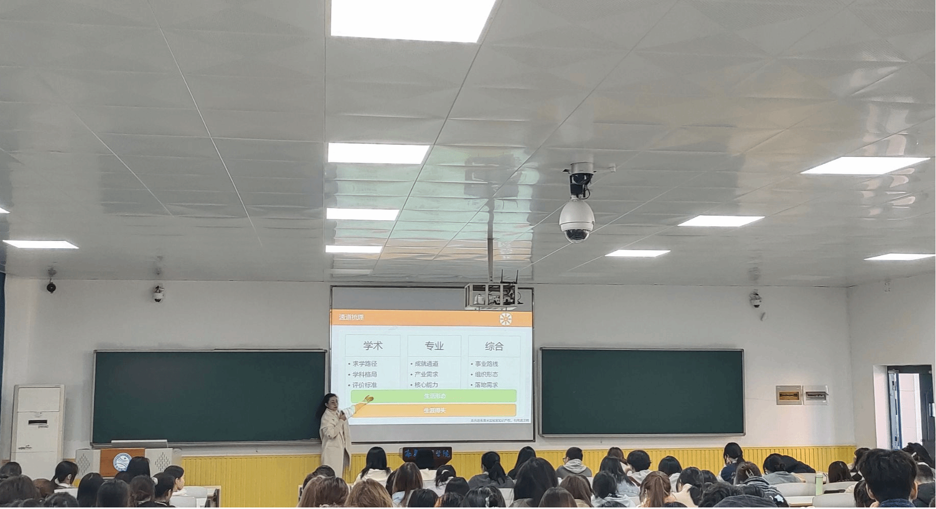 在讲座期间,肖芬主要从低年级、中年级以及高年级三个不同时期展开讲解。肖芬指出,在低年级时期,我们要勇于探索,找到属于自己的路径;在中年级时期,我们要注重素养的积累,提高自我潜力的可塑性;在高年级时期,我们要注重实践,发挥自我优势。此外,肖芬结合社会与市场的需求,向同学们提出了一些宝贵的意见,为同学们指明了规划的方向,使同学们受益匪浅。