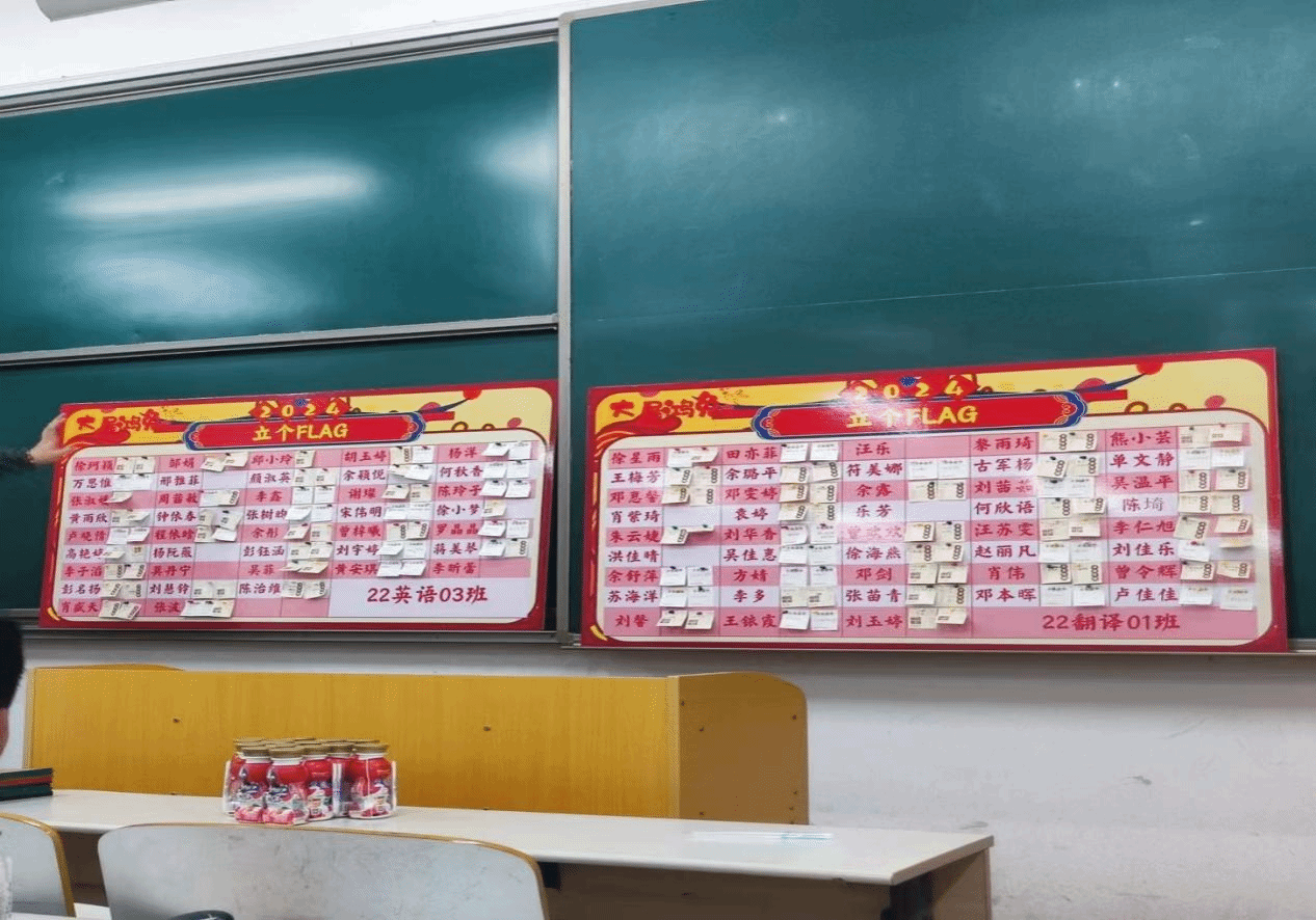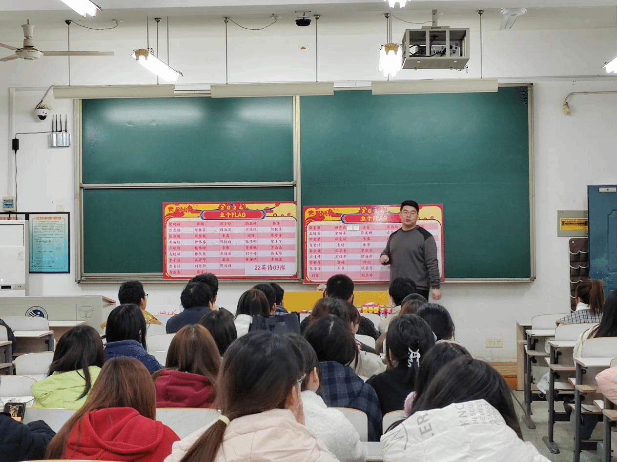 12月28日,WilliamHill威廉希尔22英语03班和22翻译01班开展了“新年立下新flag”活动,在新的一年辞旧迎新,立下目标,同学们在班主任章昱的引导下总结本学期的收获与不足,并对新学期立下明确的目标、切实的规划。