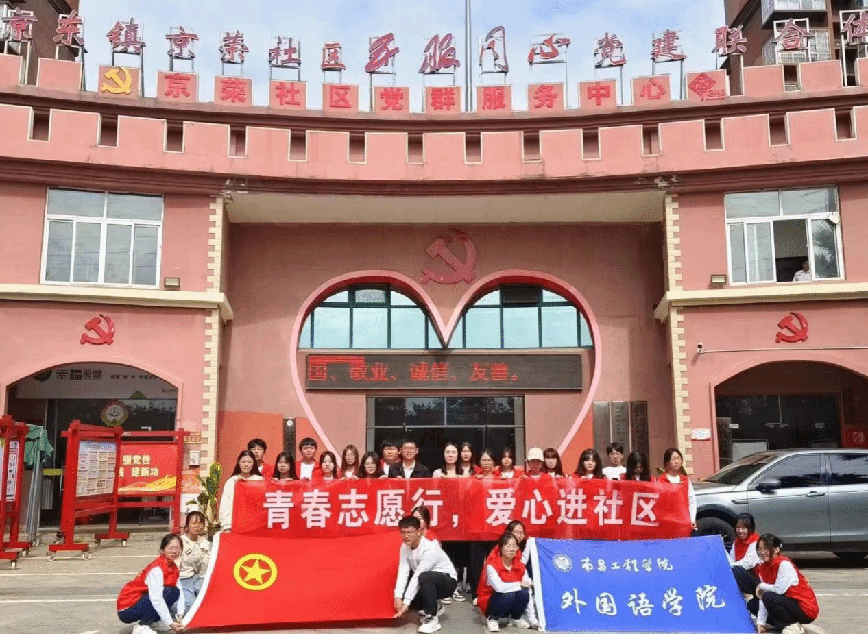 2023年10月28日,为深入学习贯彻党的二十大精神,进一步弘扬“奉献、友爱、互助、进步”的志愿者精神,WilliamHill威廉希尔23英语01班级团支部组织志愿者前往学院结对共建社区——南昌市青山湖区京东镇京荣社区开展志愿服务活动。