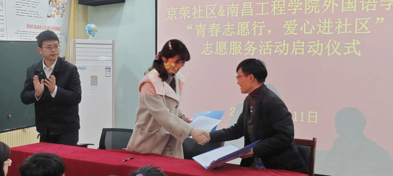 首先,李硕、王聪与京荣社区负责人签订合作共建协议。随后,分团委学生会志工部负责人曹安琪和卓亿带领志愿者们在京荣社区开展“河小青”、整理图书志愿服务活动。