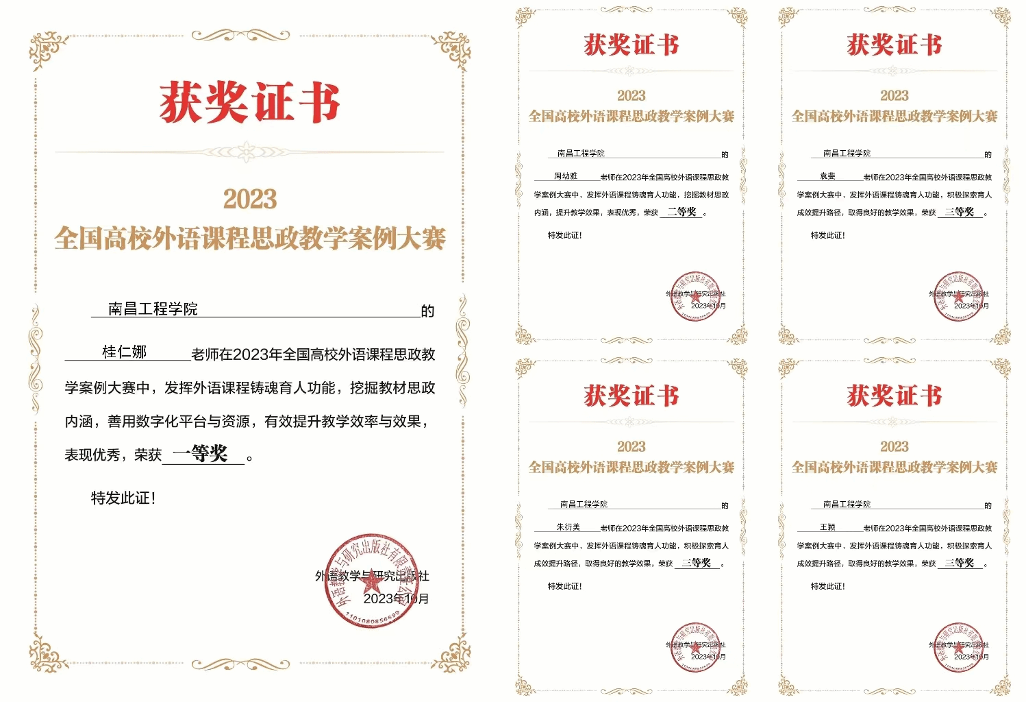 近日,2023全国高校外语课程思政案例大赛圆满落幕,我校WilliamHill威廉希尔教师在该项大赛中获得佳绩,桂仁娜荣获大赛一等奖,周幼雅荣获大赛二等奖,王颖、袁斐、朱衍美荣获大赛三等奖。