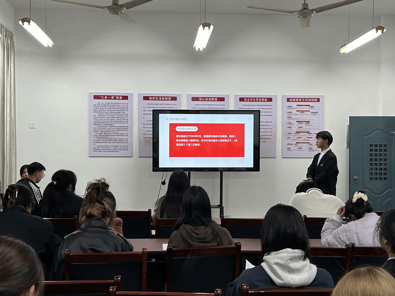 首先,优秀共青团干竞选者展现了他们卓越的才华和对团组织的深厚热爱,他们通过精彩的演讲,分享了自己在学习、社会实践和志愿服务等方面的丰富经验。随后,班级团支部代表分别从学业建设、思想建设、学风建设、品行建设四个方面展现班级风采。最后,章昱提出每位同学都要有着明确目标和规划,将专业学习和思想引领巧妙融合,在带动团支部全面发展的同时,也要注重了团支部成员的个人发展,真正做到“聚是一团火,散是满天星”。