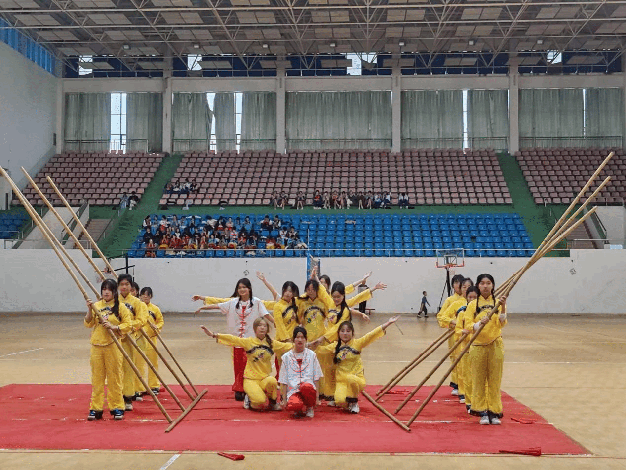 比赛中,7支参赛队伍身着各具特色的民族服饰,以饱满的热情和精湛的技艺,为观众带来了一场视觉与听觉的盛宴。竹竿舞作为一种富有节奏感和韵律美的舞蹈形式,以其独特的魅力吸引着在场观众的目光。