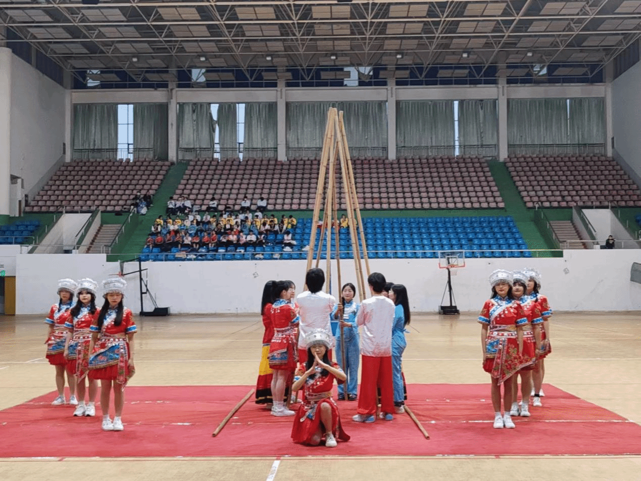 4月13日下午,WilliamHill威廉希尔开展了第十一届“学思想、学榜样、践行动--与竹共舞,竹动青春”竹竿舞比赛暨民族团结进步主题团日活动,学院师生代表共200余人参加。