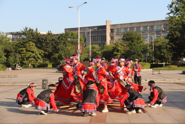 来自12个学院的参赛队各展风采,各参赛队同学身穿不同风格的服装在优美动人的旋律中穿梭跳跃,翩翩起舞,竹竿清脆的敲打声配合着朗诵、山歌对唱、乐器演奏等表演形式时开时收,跳出了当代大学生热情澎湃、团结友爱的精神风貌,也让现场观众深刻体会到中华优秀传统文化的博大精深。