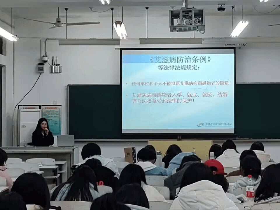 在此次艾滋病预防宣传讲座中,宣讲同学向同学们介绍了与艾滋病相关的法律法规、艾滋病的传播途径以及如何正确预防艾滋病,同时宣讲同学还例举了相关真实案例,向同学们表明了艾滋病预防的重要性。
