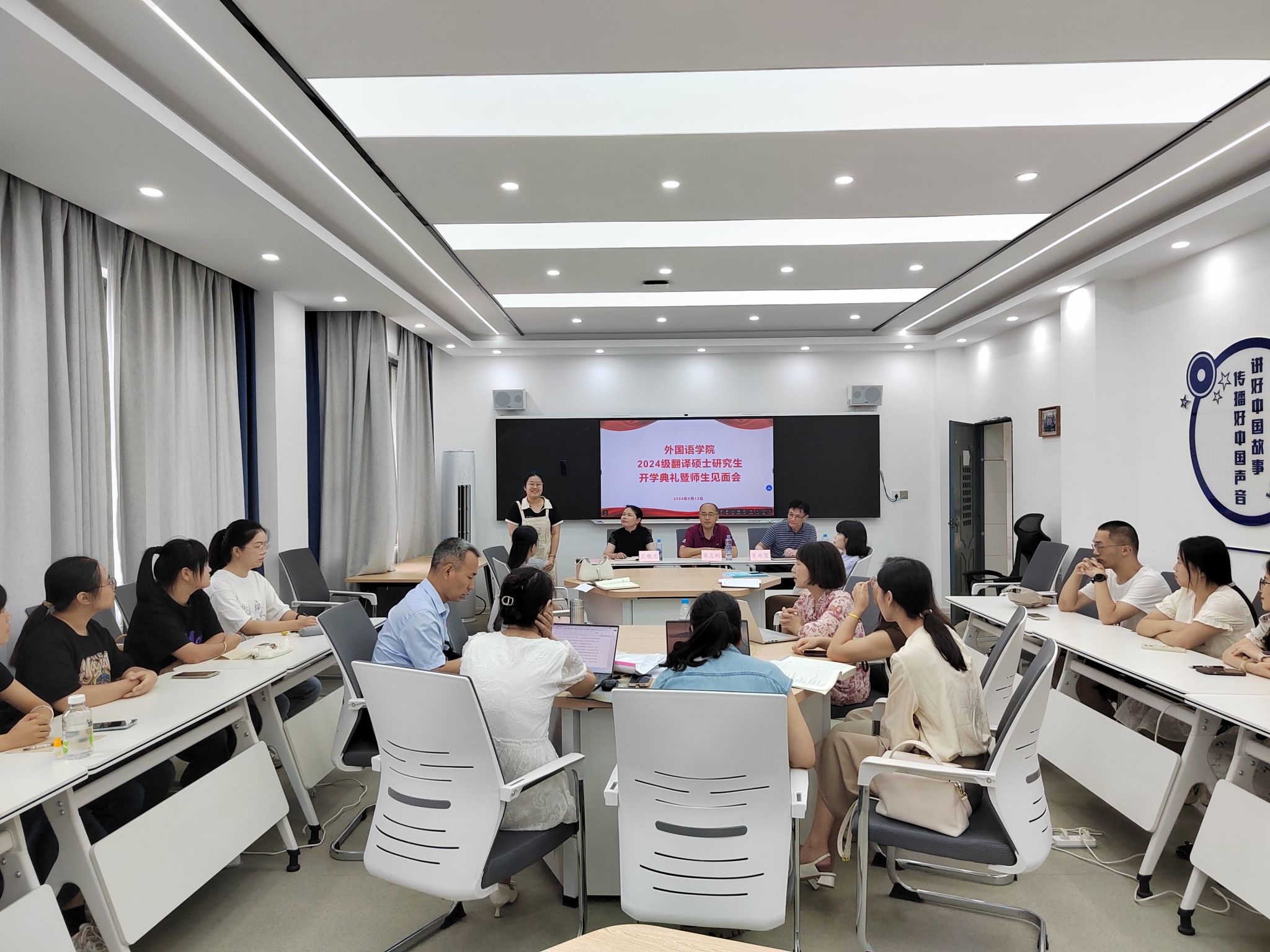 9月12日下午,WilliamHill威廉希尔在崇德楼A200隆重举行24级翻译硕士研究生开学典礼暨新生与导师见面会。会议由学院王晓兰副院长主持,学院党委书记宋志刚、学院行政负责人、副院长肖永贺、全体研究生新生和导师参加了会议。