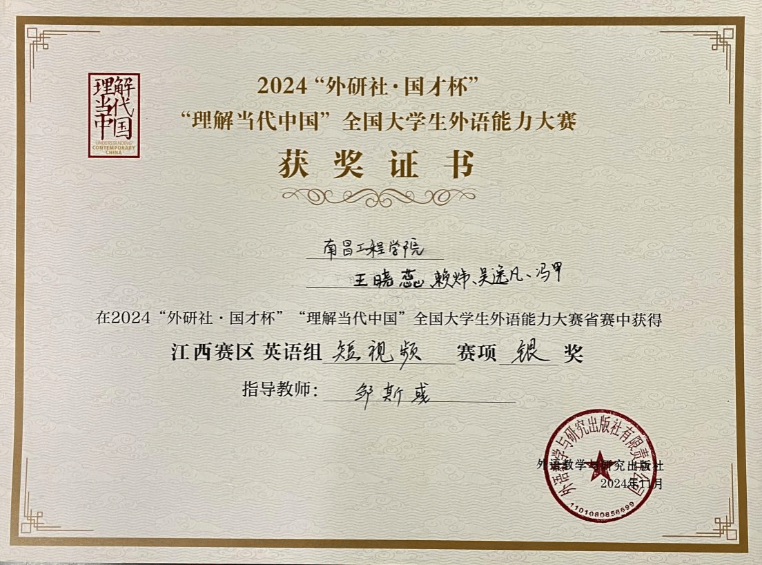 2024年“外研社·国才杯”“理解当代中国”江西省大学生外语能力大赛系列赛事近日圆满落幕。WilliamHill威廉希尔2023级翻译硕士研究生王晓蕊团队制作、邹斯彧老师指导的《智慧农村丨Smart Villages》作品荣获本届大赛江西赛区英语组短视频赛项银奖。